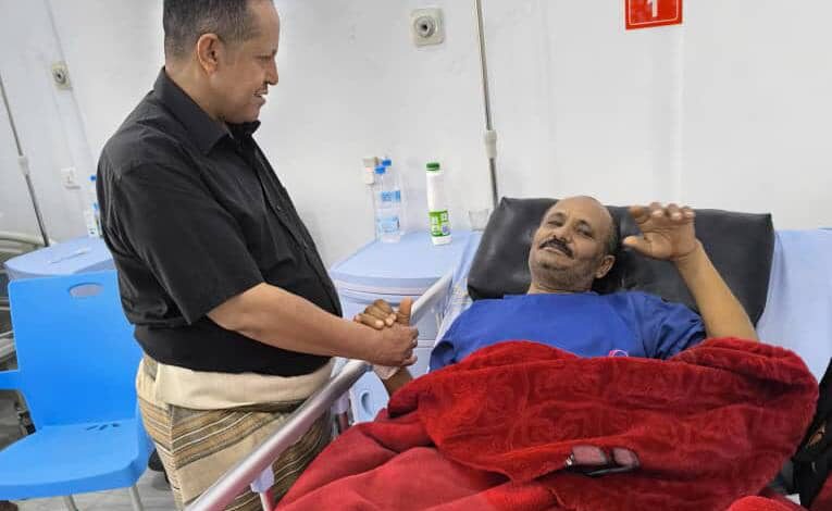 رئيس تنفيذية انتقالي لحج يزور الجريح عبد السلام ناصر علي في مستشفى عدن الخيري