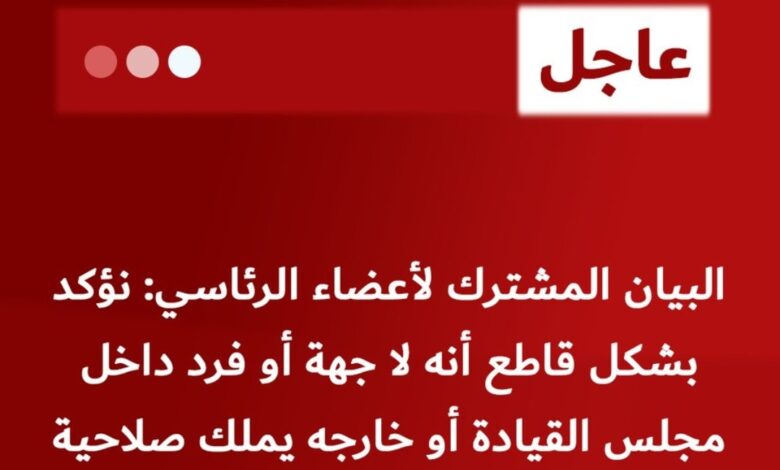 إن ما صدر عن رئيس مجلس القيادة يُعد مخالفة صريحة لإعلان نقل السلطة، الذي نص بوضوح على أن مجلس القيادة الرئاسي هيئة جماعية، تُتخذ قراراتها بالتوافق، أو بالأغلبية عند تعذر التوافق، ولا يجيز بأي حال التفرد باتخاذ قرارات سيادية أو عسكرية أو سياسية مصيرية.