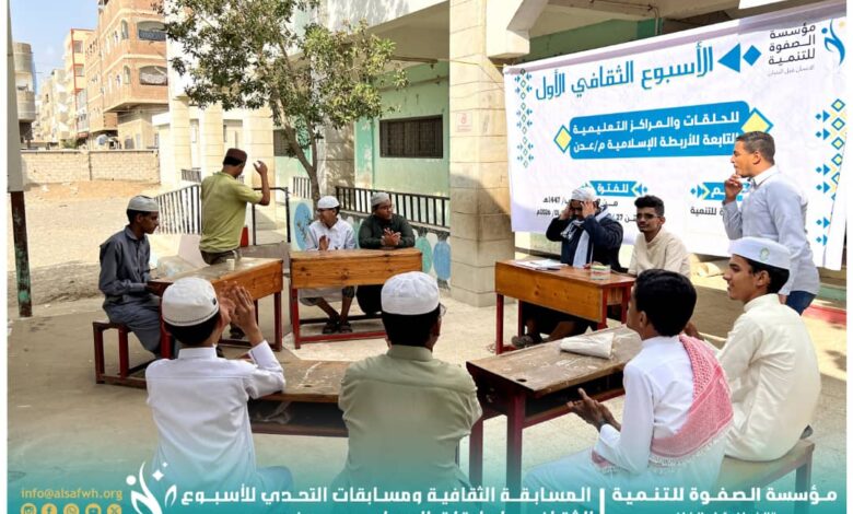 تواصلت على قدمٍ وساق الفعالياتُ والأنشطةُ المتنوعة للأسبوع الثقافي الأول لطلاب حلقات المساجد التابعة للأربطة الإسلامية بالعاصمة عدن، والذي تنظمه مؤسسة الصفوة للتنمية.