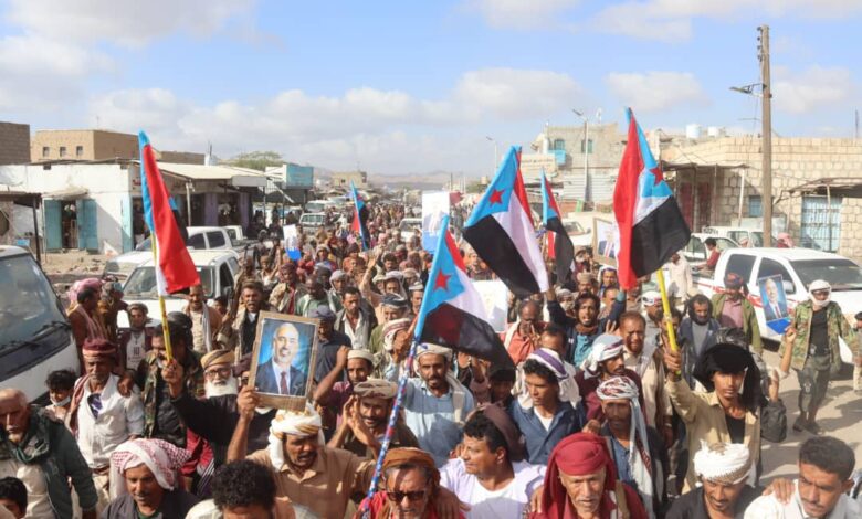 مسيرة جماهيرية في المحفد بأبين تأييداً للإعلان الدستوري لدولة الجنوب العربي وتنديداً لقصف العدوان السعودي للقوات الحكومية الجنوبية
