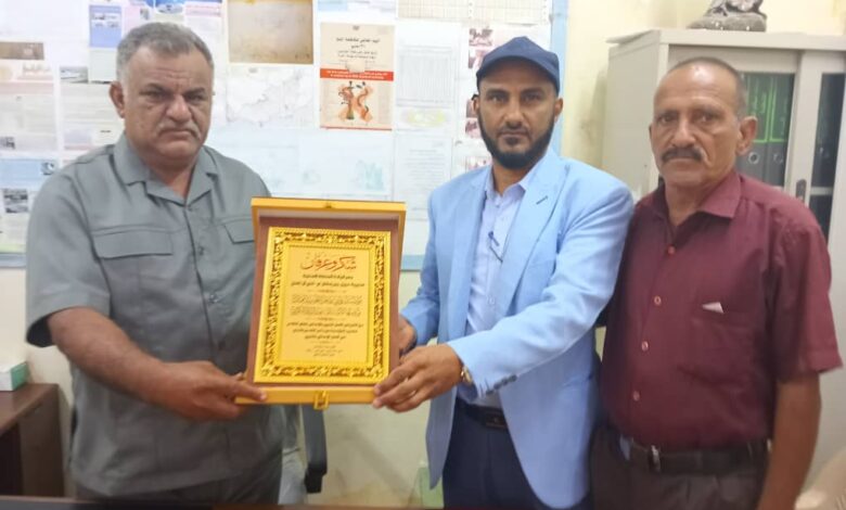 السلطة المحلية بمديرية حبيل جبر تكرم مؤسسة روابي ردفان بدرع التميز للعمل الخيري والإنساني 2025م