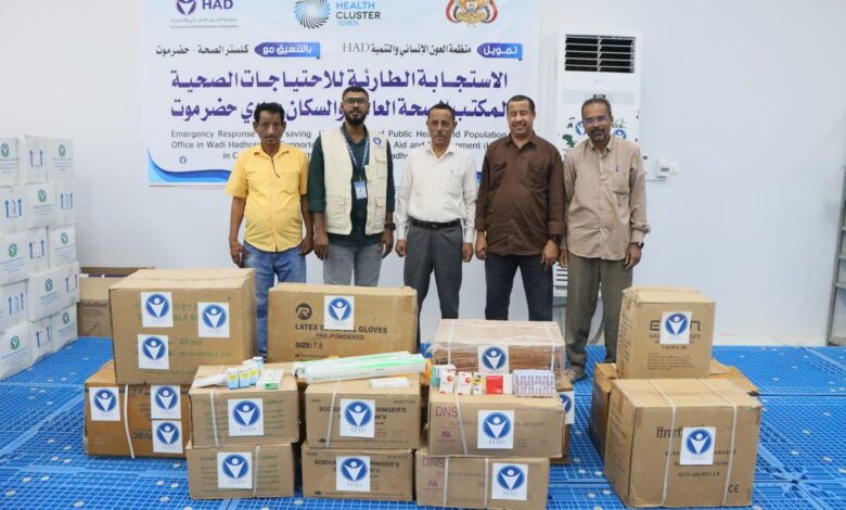 بدوره أوضح مدير مكتب منظمة HAD بحضرموت الاستاذ نزار صالح باعبيد، انه استجابة للنداء الطارئ من مكتب الصحة العامة والسكان بوادي حضرموت وللاستجابة السريعة والفعالة فقد اولت منظمتنا هاد ومن التزامها بالعمل الإنساني بتلبية هذا النداء فقد عملنا بتنفيذ خطة الاستجابة الطارئة والتي تلبي جزء من الاحتياجات الصحية الحرجة في وادي حضرموت بتنسيق مع كلستر الصحة حضرموت، قمنا بتوفير بعض الأدوية الأساسية والمهمة في حالة الطوارئ لرفد مكتب الصحة العامة بالوادي كجزء من الشراكة الممتدة جذورها من عام 2017 حيث كانت البداية بمشروع الحزمة الصحية المتكاملة في المرافق الصحية بوادي حضرموت وان شاء الله تستمر الشراكة في المستقبل القريب.