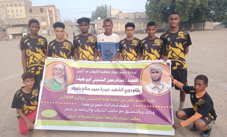 افتتحت عصر اليوم بطولة كأس الشهيد حيدرة محمد باجراد لكرة القدم للفرق الشعبية في منطقة حصن بن عطية التي تقام برعاية القائد العميد عبدالرحمن الشنيني قائد مكافحة الإرهاب م/ابين .تنظيم شباب منطقة الحصن بتنسيق مع مكتب الشباب والرياضة م/خنفر.مكتب الشباب والرياضة للفرق الشعبية م/خنفر اشراف نادي الجيل الصاعد.بمشاركة 20 فريقا شعبيا من مختلف مناطق دلتا ابين تتنافس بنظام خروج المغلوب من مرة واحد.