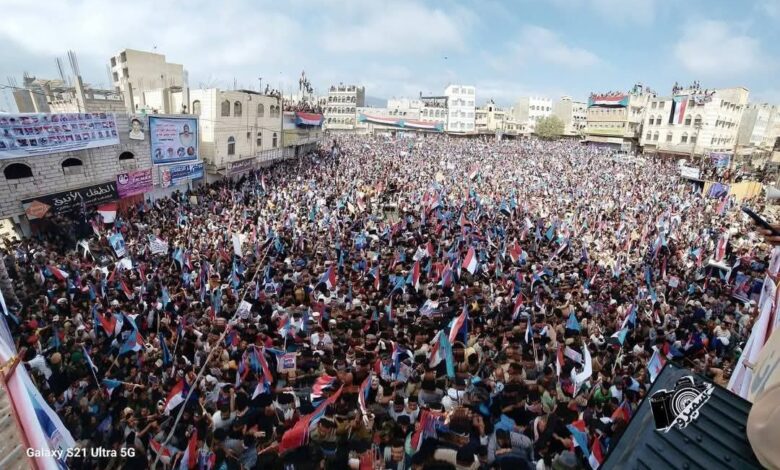 وأفاد مصادر إعلامية بأن ساحة منصة الشهداء في مدينة الحبيلين “غصت بآلاف المحتجين” الذين توافدوا في مواكب من عدن والضالع وأبين ومختلف مديريات لحج، في تجمع يهدف إلى “تأكيد التفويض الشعبي للمجلس الانتقالي ورفض الوصاية” حسب هتافات المشاركين.