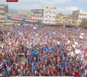 بصوت واحد هتفت الجماهير هادرة من قلب ساحة ردفان مجددة التفويض لقائدها الزُبيدي: “فوضناك.. فوضناك يابوقاسم”، مؤكدة أن أرادة شعب الجنوب “صخرة” تتحطم عليها كل محاولات التآمر والالتفاف على قضيته.