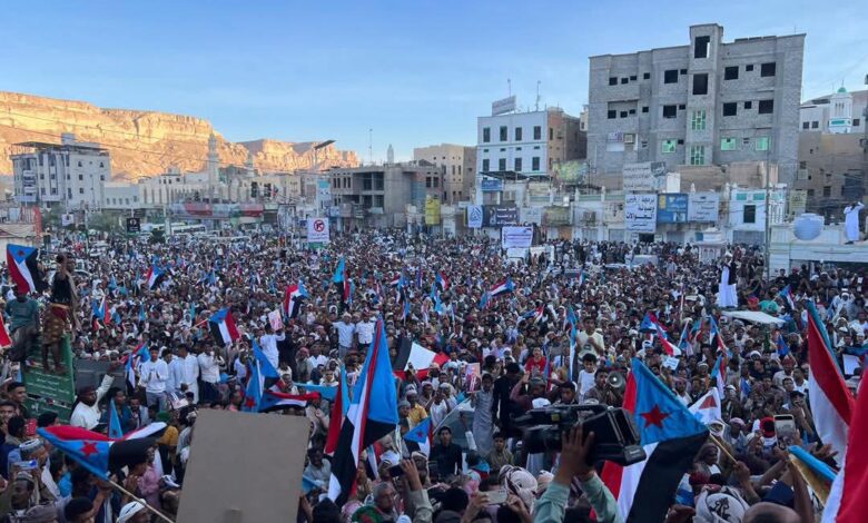الآلاف من أبناء وادي حضرموت يحتشدون في مسيرة “الثبات والصمود” بسيئون ويجددون التفويض الشعبي للمجلس الانتقالي