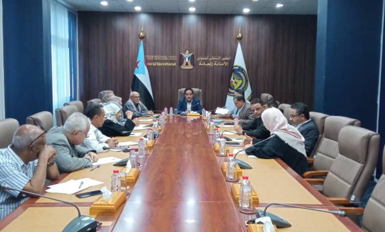 عقدت الأمانة العامة لهيئة رئاسة المجلس الانتقالي الجنوبي، اليوم الإثنين، اجتماعها الدوري برئاسة القائم بأعمال الأمين العام الأستاذ محمد أحمد الشقي، حيث ناقش الاجتماع جملة من القضايا السياسية والتنظيمية المرتبطة بالأوضاع في الجنوب.