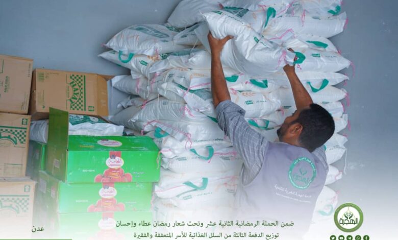 في مشهدٍ إنسانيٍّ يفيض بالعطاء، وتحت ظلال الرحمة التي تكتنف أيام شهر رمضان المبارك، تواصل مؤسسة الهجرة الخيرية للتنمية مسيرتها المباركة في مدّ جسور الخير إلى الأسر المتعففة والفقيرة في مختلف مديريات محافظة عدن، ضمن الحملة الرمضانية الثانية عشر، و تحت شعار (رمضان عطاء وإحسان).