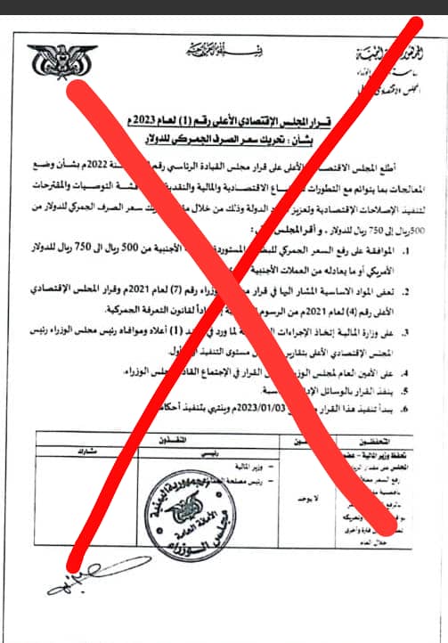 كما أن هذه القرار لا ينسجم مع الشق الاقتصادي في مخرجات مشاورات الرياض التي تفضي إلى الإلتزام بمعالجة الأوضاع الاقتصادية وتدهور العملة، إضافة إلى تعارض القرار مع إعلان وزير المالية عن الموارد العامة لعام 2022 بدون الإقراض الخارجي والتي بلغت 3 تلريون و 243 مليار و 566 مليون ريال يمني إذ أنه لايوجد مبرر لقيام رئيس الوزراء بمثل هذا القرار والذي يسعى من خلاله حد زعمه إلى تعزيز موارد الدولة.. مع العلم.. الموارد العامة للعام 2022 والتي ذكرها الوزير تكفي لدفع كل المرتبات والباقي يفترض أن يكون لتحقيق التنمية الاقتصادية والتطوير وبقية النفقات التشغيلية ونثريات الدولة في حال أحسنت إدارتها..
