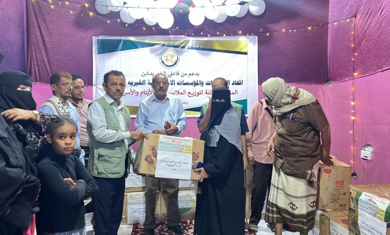 اتحاد الجمعيات والمؤسسات يدشن المرحلة الثالثة من حملة توزيع الملابس في عدد من المحافظات المحررة