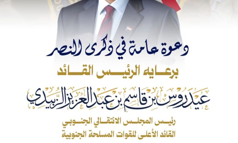 برعاية الرئيس القائد عيدروس الزبيدي، رئيس المجلس الانتقالي الجنوبي والقائد الأعلى للقوات المسلحة الجنوبية، وُجّه المجلس الانتقالي الجنوبي دعوة عامة لأبناء العاصمة عدن للمشاركة في فعالية إحياء ذكرى النصر الإفطار الجماعي السنوي.