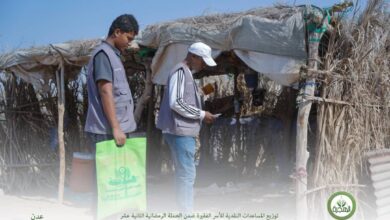 مؤسسة سفراء الخير للتنمية والأعمال الإنسانية توزّع سلال غذائية وتمور للأسر المتعففة بأبين