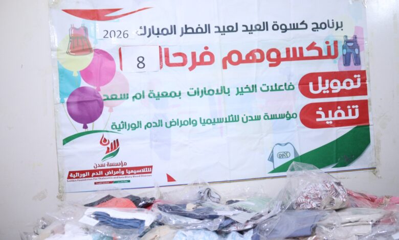 دشنت مؤسسة سدن للثلاسيميا وأمراض الدم الوراثية بالمكلا مشروع توزيع كسوة العيد لمرضى الثلاسيميا والدم الوراثي في حضرموت بمناسبة عيد الفطر لهذا العام 2026م ، بدعم من فاعل خير .