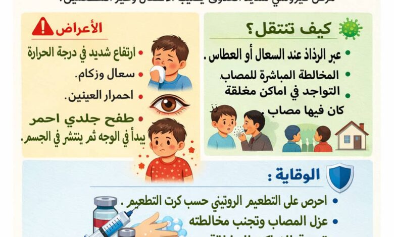 قسم التثقيف بمكتب الصحة والسكان مديرية رصد يرصد رسالة توعوية بمرض الحصبة لوزارة الصحة العامة والسكان