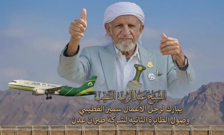 تهنئة من المرجعية الجنوبية الشيخ عبدالرب النقيب إلى رجل الأعمال الشيخ سمير القطيبي بمناسبة تعزيز أسطول “طيران عدن