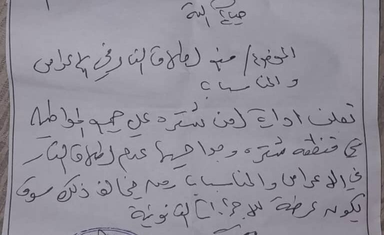 واختتم التعميم بالتأكيد على أن الالتزام بهذه التوجيهات يعكس وعي المجتمع وحرصه على سلامة أفراده ومقدراته، داعيًا الجميع إلى التعاون لما فيه مصلحة شقرة وأبنائها.