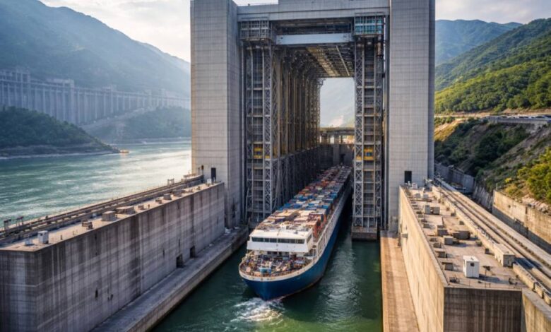 في إنجاز هندسي يُعد من بين الأضخم في تاريخ الملاحة الداخلية، تواصل الصين تشغيل مصعد السفن العملاق في منطقة سد الممرات الثلاثة على نهر اليانغتسي، والذي يُعرف بأنه “أكبر مصعد سفن في العالم”، وقد صُمم لعبور السفن عبر فرق ارتفاع هائل يصل إلى نحو 113 مترا فوق النهر.