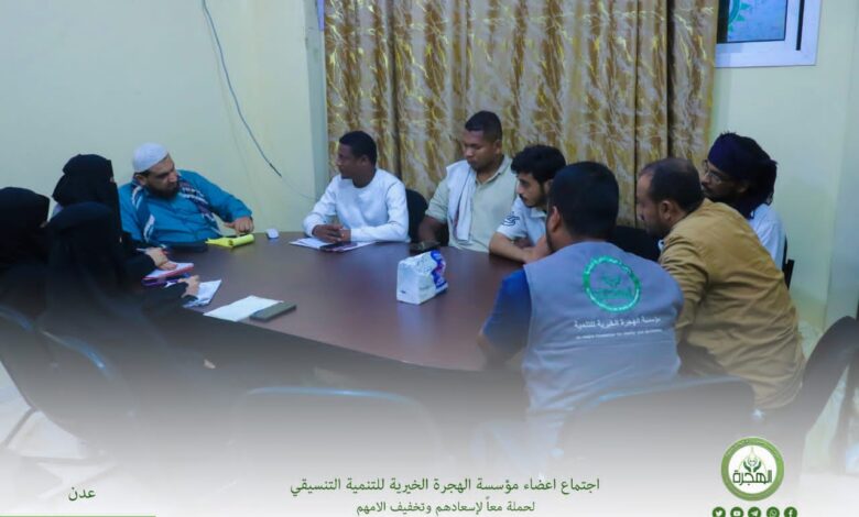 عقدت مؤسسة الهجرة الخيرية للتنمية بالعاصمة عدن اجتماعها التنسيقي لحملة (معاً لإسعادهم وتخفيف آلامهم) للعام 2026م، وذلك يوم الأحد 9 ذي القعدة 1447هـ الموافق 26 أبريل 2026م، في أجواء يسودها الإخلاص وتتوحد فيها النوايا لخدمة الفئات الأشد احتياجًا.