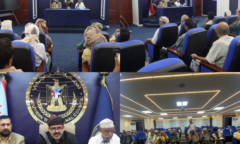 وأضاف اليزيدي “أن اجتماعنا اليوم في ظرف دقيق تمر به قضيتنا الجنوبية، حيث تتعرض لمؤامرات كبيرة تستهدف وحدتنا ومكتسباتنا الوطنية، الأمر الذي يحتم علينا جميعاً توحيد الكلمة، ورص الصفوف، ونبذ الخلافات، والوقوف صفاً واحداً خلف قيادتنا السياسية ممثلة بالمجلس الانتقالي الجنوبي.