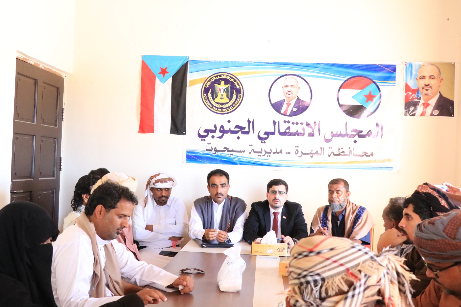 التقى مجاهد بن عفرار، رئيس الهيئة التنفيذية للقيادة المحلية للمجلس الانتقالي الجنوبي بمحافظة المهرة، صباح اليوم الخميس، برئيس وأعضاء الهيئة التنفيذية للمجلس الانتقالي الجنوبي بمديرية سيحوت بمحافظة المهرة وبحضور نائبه مصعب حيمد وعدد من أعضاء تنفيذية انتقالي المحافظة.