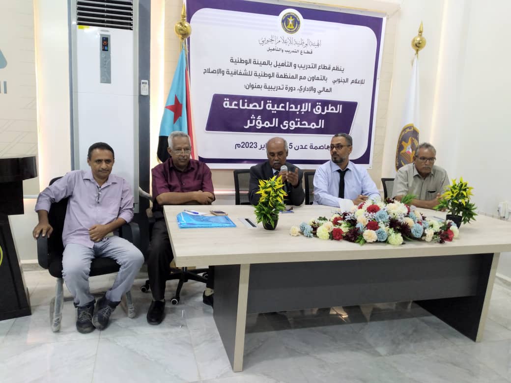 بالشراكة مع قطاع التدريب والتأهيل بالهيئة الوطنية للاعلام الجنوبي دشنت المنظمة الوطنية للشفافية والإصلاح المالي والإداري صباح هذا اليوم الأحد الموافق 5فبراير2023م برنامجها “دعم” لتمكين الشباب بتنفيذ أول خطوات هذا البرنامج بدورات تأهيلية في مجال ((الطرق الإبداعية لصناعة المحتوى المؤثر)) والذي ستكون هذه الدورة ضمن سلسلة دورات منها التصوير الاحترافي ومهارات استخدام الجرافيكس.
