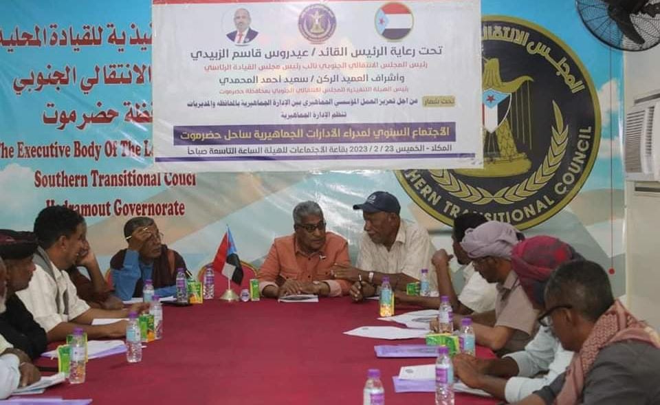 جماهيرية انتقالي حضرموت تنظم لقاءً تشاوريا لمديرو إداراتها في المديريات.