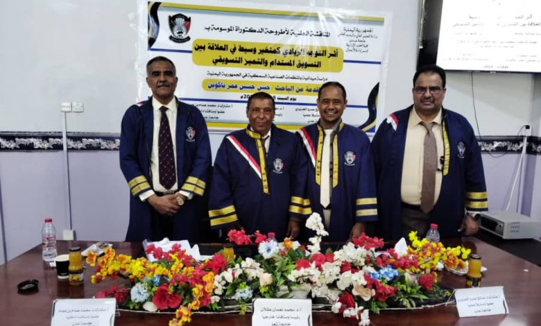 درجة الدكتوراه بامتياز للباحث حسن باكوين في إدارة الأعمال من كلية العلوم الإدارية بجامعة عدن