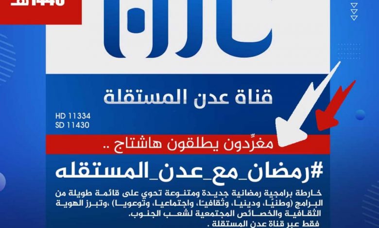* نشيد بتميز قناة عدن المستقلة في تقديم محتوى رمضاني هادف من داخل أرض الجنوب يعكس ثقافة وتاريخ شعب الجنوب وقضيته العادلة