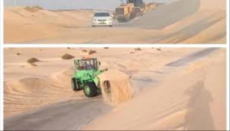 إزالة الرمال من طرق شبوة الدولية ضمن خطة طوارئ موسمية