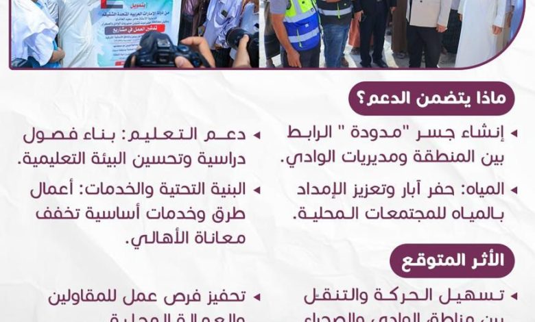 جسر مدودة ومشاريع تعليم ومياه بتمويل إماراتي في وادي حضرموت