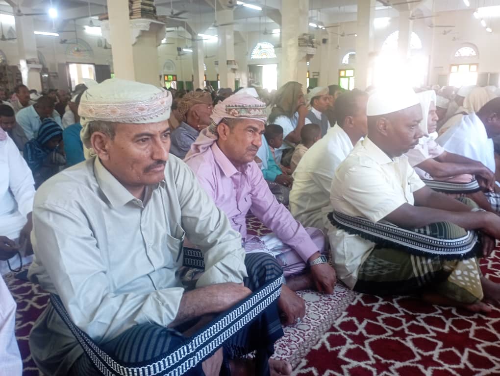 حضر صلاة العيد الحبيب محضار علي المشهور ومدير أمن أحور العقيد ناصر جمبا والعقيد سعيد صالح عاقله مدير الأمن السياسي ورئيس عمليات اللواء 111 النقيب سعيد احمد العميسي ومدراء إدارة المجلس الانتقالي ومدراء مكاتب السلطة المحلية ومشايخ وساده ورجال علم ومثقفين وجمع غفير من أبناء المديرية
