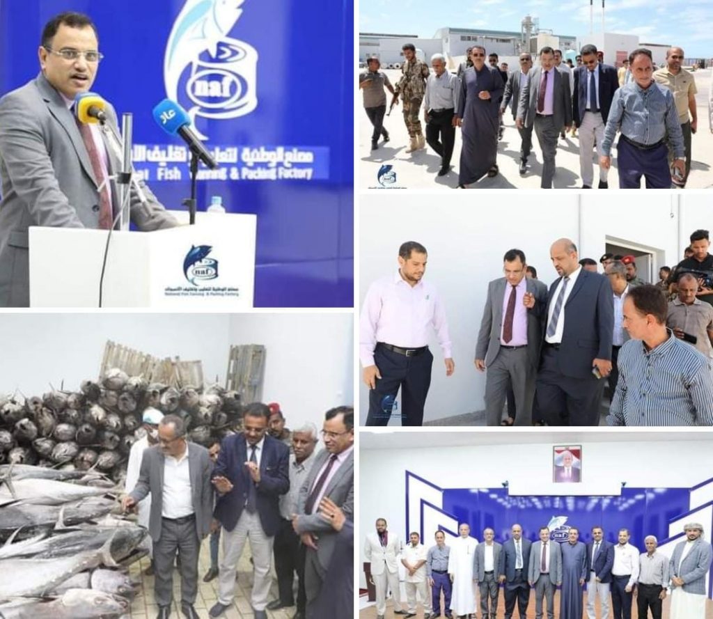 وخلال الزيارة استمع الوزير السقطري من رئيس مجلس الادارة الأستاذ سالم احمد باقازي، ونائبه الأستاذ أسامة البكري، والمدير العام الأستاذ محمد الفاتش، على مراحل إنتاج وتعليب الأسماك، والقدرة الاستيعابية للثلاجات المركزية المقدرة بـ 4200 طن، ومصانع طحن المخلفات لإنتاج مسحوق وزيت الأسماك الذي يعالج 55 طن يومياً، وينتج 13.5 طن من مسحوق الأسماك و 2.75 طن من الزيت أوميقا3 ، والثلج المجروش،والمحطة الكهربائية، والمنشآت الغذائية والخدمية بالمصنع، وتجهيزات أقسام التعليب والتصنيع التي تعمل بأحدث الأنظمة الذكية وتقع على مساحة إجمالية 7.516 متر مربع بطاقة إنتاجية تبلغ 100 طن من الأسماك بمعدل 300 ألف علبة تونا يومياً.
