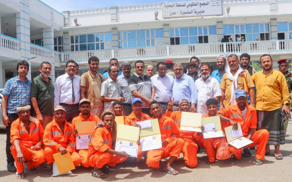 برعاية وزير الدولة محافظ العاصمة عدن السلطة المحلية بمديرية المنصورة تكرم عدد من عمال النظافة المبرزين