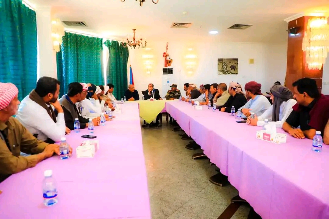 اللواء بن بريك يلتقي وفداً من حكماء ومشايخ ومقادمة قبائل نهد في حضرموت