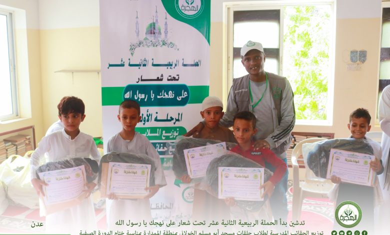 في إطار جهودها التنموية والإنسانية في دعم العملية التعليمية، دشّنت مؤسسة الهجرة الخيرية للتنمية عصر يوم الجمعة الموافق 25 يوليو 2025م، 1 صفر 1447هـ، المرحلة الأولى من الحملة الربيعية الثانية عشرة تحت شعار: “على نهجك يا رسول الله”، وذلك من خلال توزيع (160 حقيبة مدرسية) على طلاب حلقة مسجد أبي مسلم الخولاني بمنطقة الممدارة ، بهدف مساعدة الأسر ذات الدخل المحدود على توفير مستلزمات التعليم لأبنائهم .