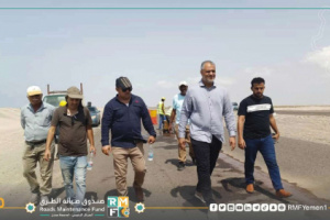 المهندس الماس يتفقد الأعمال في مشروع طريق العلم_ دوفس “يمين ” في أبين