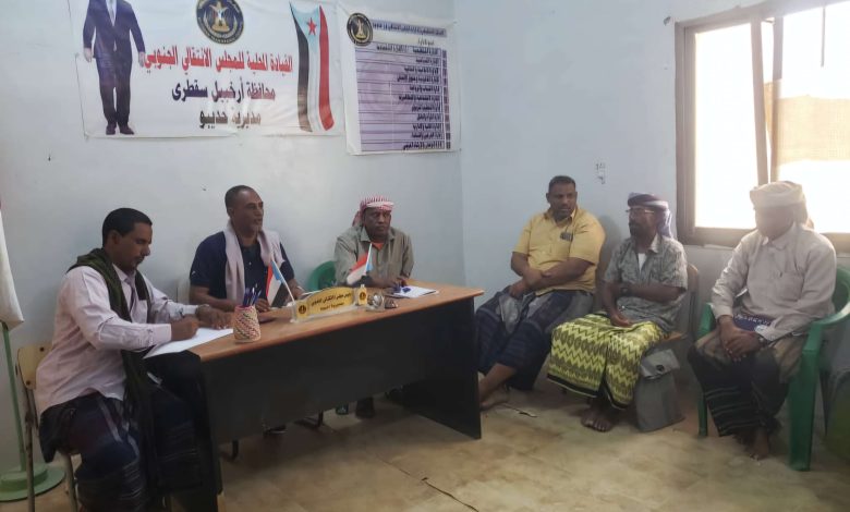 عقدت الهيئة التنفيذية للقيادة المحلية للمجلس الانتقالي الجنوبي في مديرية حديبو بمحافظة سقطرى، اليوم الأحد، اجتماعها الدوري لشهر يونيو، برئاسة رئيس الهيئة، سالم عبدالله الحامد.