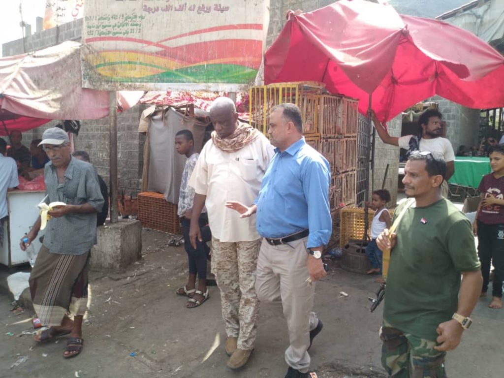 قيادتي السلطة المحلية والانتقالي الجنوبي في التواهي تتفقدان السوق المركزي بالمديرية.