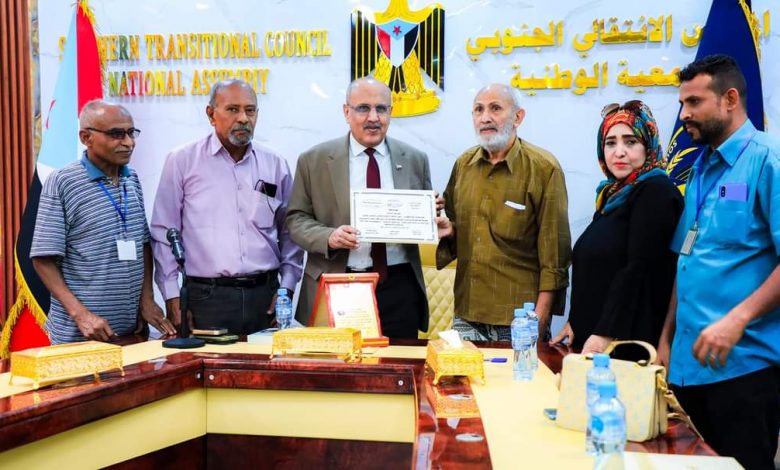 كرّم منتدى الباهيصمي الثقافي الفني بالعاصمة عدن، اليوم الثلاثاء، الأستاذ علي عبدالله الكثيري رئيس الجمعية الوطنية للمجلس الانتقالي الجنوبي، بدرع المحبة والوفاء للعام 2024.
