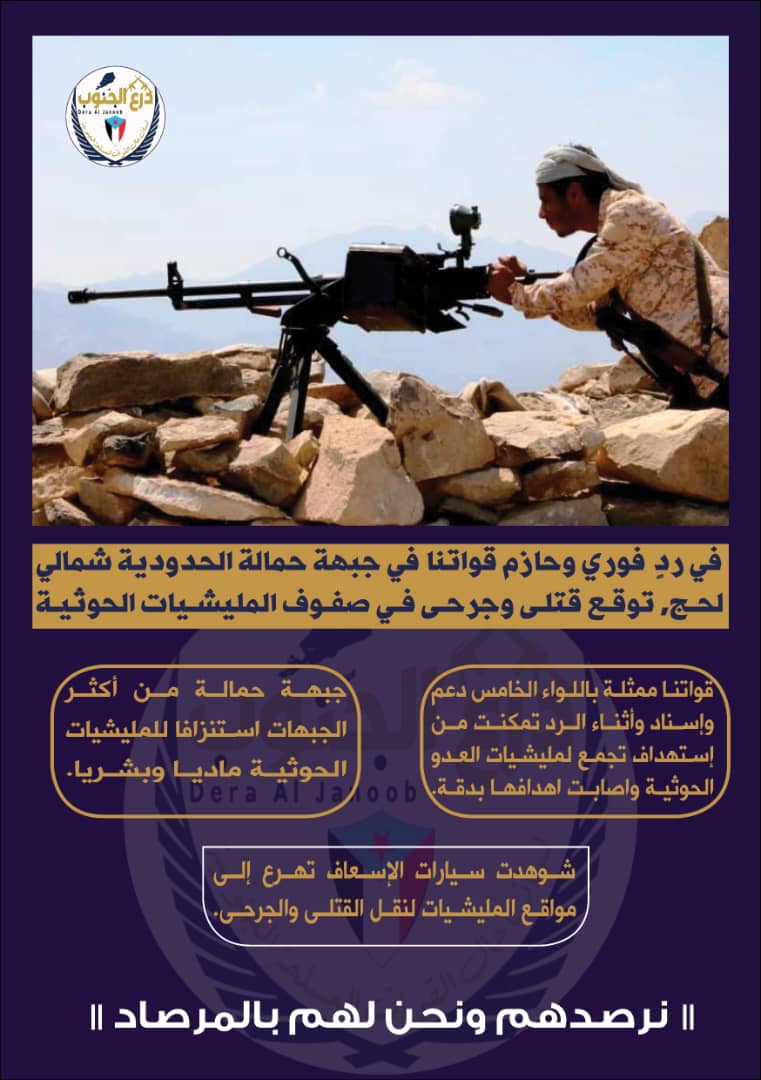 قتلى وجرحى في صفوف مليشيات العدو الحوثية بنيران قواتنا شمالي لحج