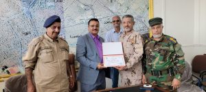حيث قام مدير إدارة مكافحة المخدرات، العميد علي حسين الزميلي، بمعية نائبه النقيب إيهاب أحمد علي، وبحضور مدير المنطقة الأمنية الخامسة، العميد علي بن علي، بتسليم شهادة شكر وتقدير لمدير عام المنصورة، أحمد الداؤودي، نظير إسهاماته ومشاركته في إنجاح فعاليات اليوم العالمي لمكافحة المخدرات، التي أقامتها إدارة مكافحة المخدرات والمؤثرات العقلية بشرطة عدن، خلال الفترة من 25 – 26 يوليو 2023م، تحت شعار ( إشكالية جرائم المخدرات بين القانون والتطبيق العملي ).