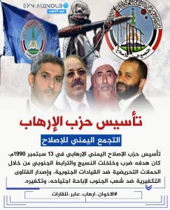 واعتبروا أن: “ذكرى تأسيس حزب الإصلاح الإرهابي، (ذراع الإخوان باليمن)، تعتبر ذكرى لميلاد كيان مشئوم خرج من رحم مؤامرة قذرة”.