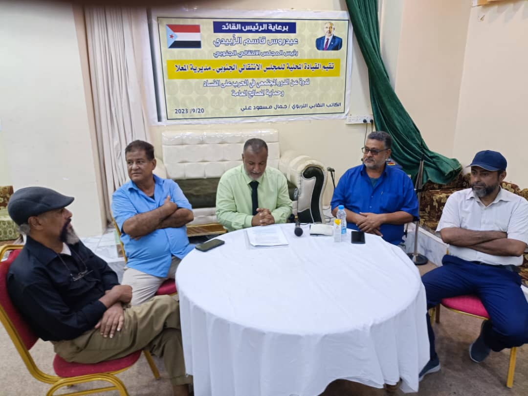 انتقالي المعلا ينطم ندوة توعوية حول “الدور المجتمعي في الحد من الفساد وحماية المصالح العامة”.