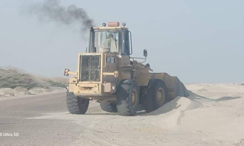 وبمتابعة وإشراف السلطة المحلية بمديرية رضوم ممثلة بمدير عام المديرية الاستاذ هادي سعيد الخرماء” تواصل الفرق الفنية التابعة للجهة المنفذة العمل في إزالة الرمال المتحركة ومتابعة تصفية مخلفات السيول الأخيرة من الخط الساحلي من عين بامعبد حتئ منطقة عرقة.