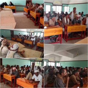 وخلال اللقاء، رحبت مديرة المدرسة الأستاذة صفية صالح سالم بجميع الحاضرين، وحيت مواقفهم الوطنية المشرفة، وأشادت بجهود الآباء وأولياء الأمور والأمهات الفاضلات الذين كان لهم الدور الفاعل والكبير في الدفع بأبنائهم نحو المدرسة لتلقي العلوم ونهل المعارف ومحو الجهل والتغلب على سياسة التجهيل الممنهج الذي يسعى البعض لتكريسه في نفوس أبناء المديرية.