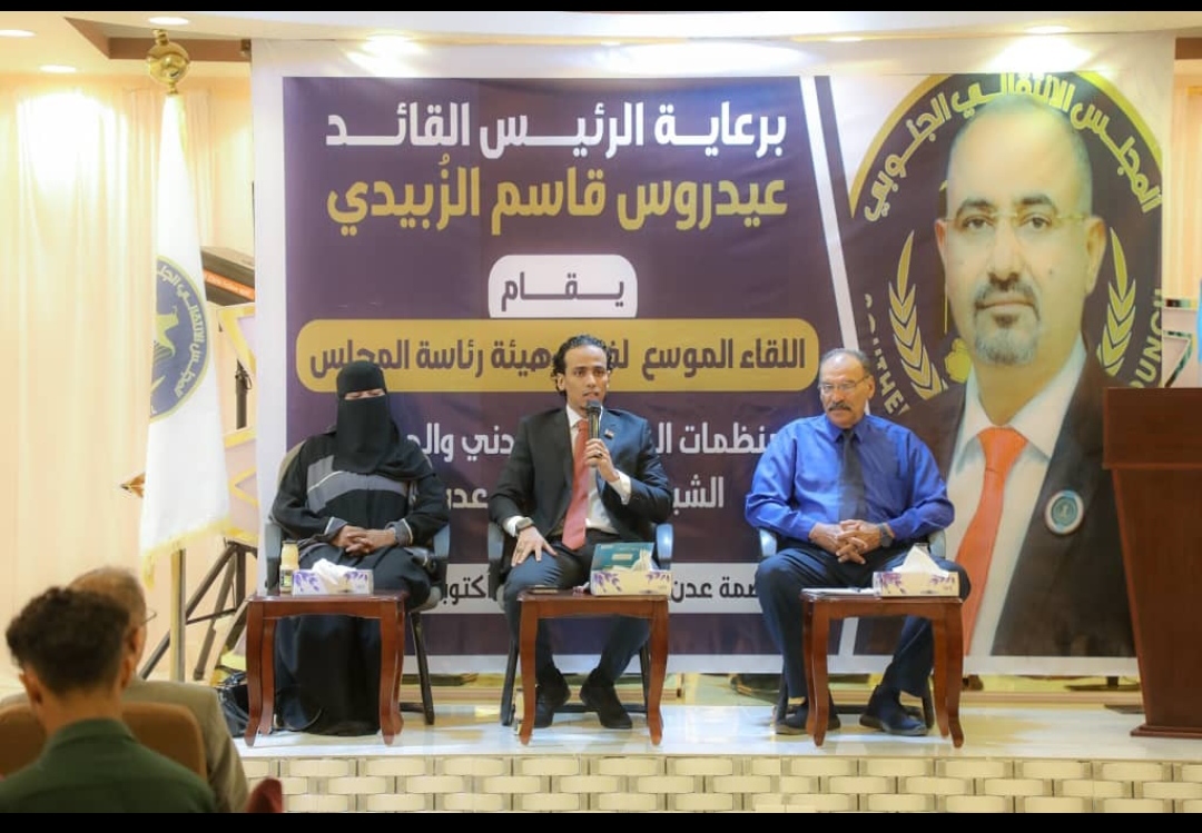 وفي بداية اللقاء، قدم الأستاذ مؤمن السقاف تحية الرئيس القائد عيدروس قاسم الزُبيدي إلى الحضور، معبرًا عن أهمية دور المنظمات المجتمعية والمبادرات الشبابية في تنمية المجتمع.