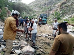 أبناء مديرية سرار يافع ينفذون مُبادرة مجتمعية لإصلاح طريق أمهدارة وادي سرار