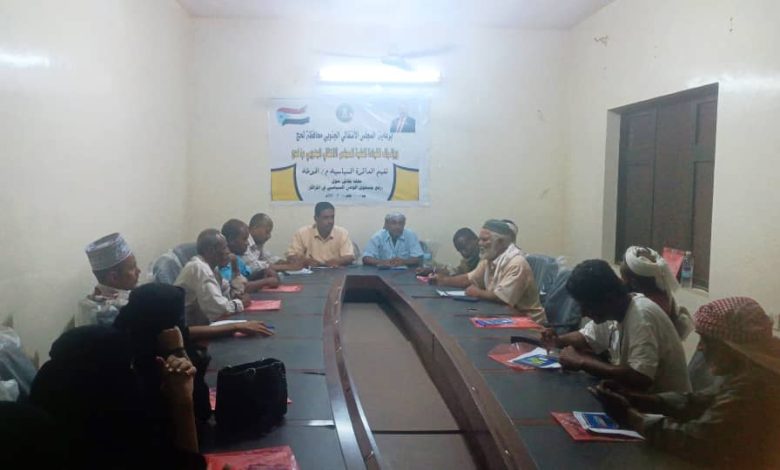 انتقالي الحوطة يعقد جلسة نقاشية لتعزيز الوعي السياسي في اللجان المحلية