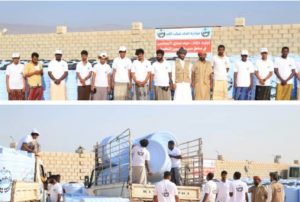 توزيع 300 خزان مياه في مناطق حصوين المنكوبة بالمهرة.