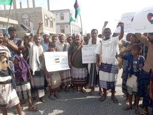 نظم المئات من أبناء مديرية احورمحافظة أبين ، اليوم الاثنين الموافق 20/11/2023 مظاهرة جماهيرية تضامنا مع غزة التي تتعرض لإبادة جماعية من قبل قوات الاحتلال الصهيوني.